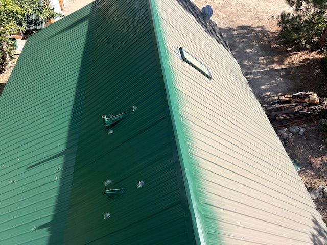 Metal Roof Recoat: Rust treatment, fastener replacement and seam resealing followed by manufacturer-approved elastomeric topcoat providing renewed weather protection and a cooler roof surface.